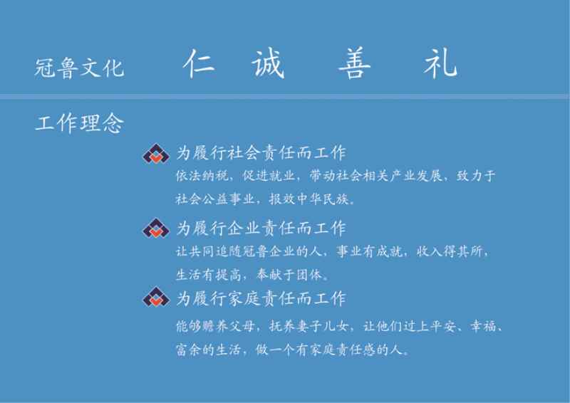 冠魯百川幕墻有限公司成立于2010年,隸屬于冠魯集團董事局。具備建筑裝飾、幕墻工程設計與施工一體化壹級資質,獲得ISO-9001質量體系認證;市級重合同、守信用企業;幕墻行業全國前50強企業。主要承擔各類建筑幕墻及建筑工程的設計與施工、石材加工銷售、玻璃幕墻及金屬幕墻門窗生產、加工、銷售。公司擁有各類專業技術人員200人,市場開發區域遍及北京、天津、河北、山東等國內大中型城市,工程承接能力逐步得到提高,工程施工質量、服務得到廣大業主的高度評價。 冠魯集團公司確立了“仁”、“誠”、“善”、“禮”的企業文化,以履行“社會責任、企業責任、家庭責任”為己任,奉行“寧可自己辛苦萬遍,不讓客戶為難一時”的服務理念,本著“一點都不能差”的工作精神,認真貫徹“質量、服務、速度、誠信”工作方針,贏得了客戶、合作伙伴、業內同行及政府的信任、尊重和贊譽。“匯百川之水成浩瀚大海,集天下賢士創冠魯偉業”!冠魯人愿與社會各界賢人志士精誠合作,攜手共創美好未來! |