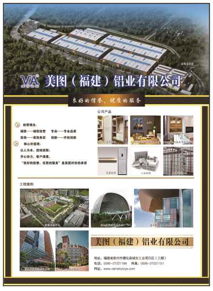 美圖(福建)鋁業有限公司位于德化縣城東工業園區,由美圖鋁業環球有限公司投資,為新加坡外商獨資企業,注冊資本金1.5億元。公司專門從事鋁合金型材的生產和加工,引進德國、瑞士、韓國等國外及國內先進的自動化生產設備,生產過程基本實現自動化。原材料來自國內主要鋁產區,產品定位為中高端鋁合金幕墻、門窗和太陽能鋁合金支架、框架等,主要銷往國內及日本、東南亞、歐洲、美洲、非洲等地。 該項目占地面積257畝,計劃總投資6.5億元,年產鋁合金型材10萬噸,預計實現年產值20億元。規劃分兩期建設:一期擬投資3.7億元,已投入3.2億元,完成擠壓車間、噴涂車間、熔鑄車間、氧化車間、深加工車間、鈑金車間、成品庫、生產調度中心建設和廠區主要道路硬化、綠化。現有九條擠壓生產線投入生產。二期擬投資2.8億元,預計2019年6月投資建設。現有工人400人,2019年產值預計達5億元。 美圖鋁業門窗型材是基礎的建筑鋁型材,具有強度高、重量輕、穩定性好、可塑性好、變形量小、 防火性強、使用壽命長等優點。生產的鋁合金門窗系列型材,包含平開窗、平開門、推拉窗、推拉門、隔熱平開門窗、隔熱推拉門窗、鋁木系列窗。其厚度、力學性能、耐候性等指標符合國家標準的相關規定。我公司開發、設計、生產的鋁合金門窗產品加工精細,安裝講究,密封性良好。已獲得“一種密封性不易破壞的吊掛式折疊門”、“一種便于拆裝百葉的百葉窗”、“一種可改變通風方式的自動排水百葉窗”三種專利證書 公司目前已完成新加坡勿洛廣場、國立大學醫學研究生院、圣淘沙名勝世界Hard Rock 酒店、供應、制造、淡濱尼鎮中心、阿摩園等項目。 公司將立足高端定位,按照高起點、高定位、高品質等要求,依托國內的行業人才、投資和市場等優勢,引進新加坡成熟的管理理念和經營方式,實施員工、客戶、供應商、公司“四位一體”的經營戰略,走精益化、差異化的經營道路,持續為客戶提供更高的品質和更好服務。 |